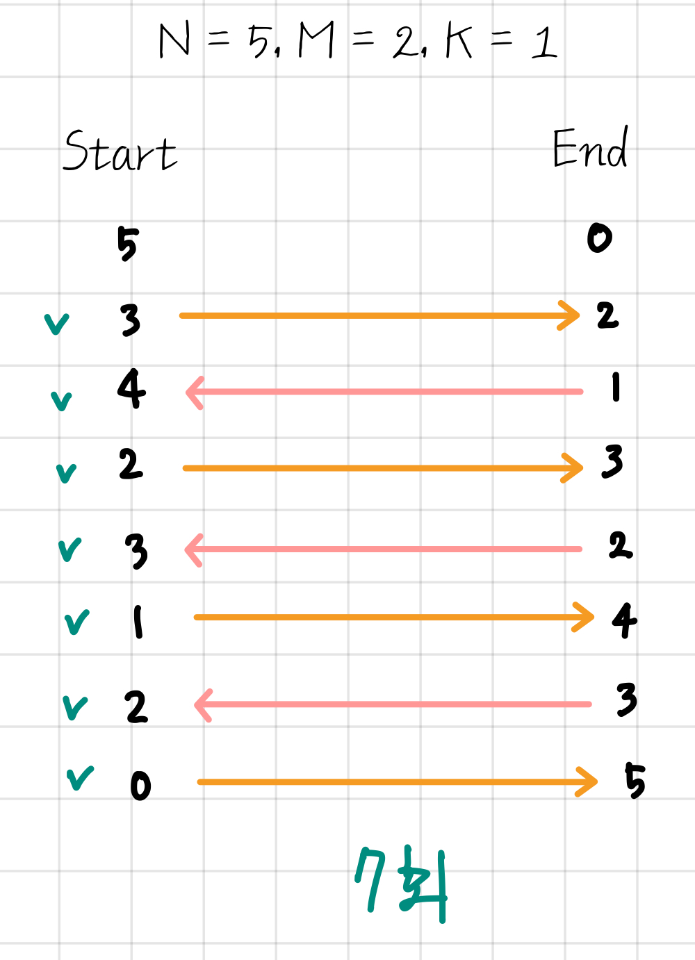 ํ์ง๋ง ์์ ๊ฐ์ด ์๊ฐํ๋ฉด์ m*k๋ช ์ด ๊ฐ๋ค๊ฐ 1๋ช ์ด ๋์์ค๋ฉด ๋๋ค๋ ์๊ฐ์ m*k-1 ์ ๊ฐ์ง๊ณ ์์์ ์์ฑํ๋ ค ํ๋ค.