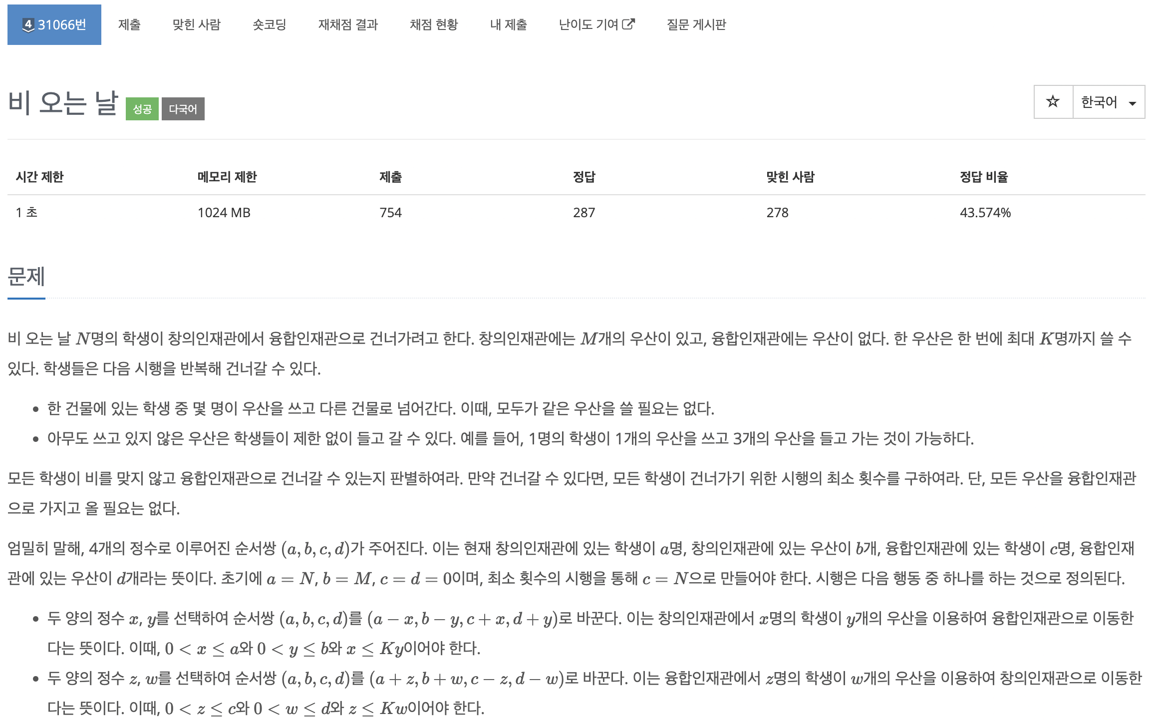 ๋น์์ ๋๋ฌด ๋ณต์กํ๊ฒ ์๊ฐํ๋์ง ๊ผฌ์ฌ๋ฒ๋ ธ๋ ๋ฌธ์ ๋ฅผ ์ค๋ ๋ค์ ์ ๋ฆฌํด์ ํ์ด๋ณด์๋ค.