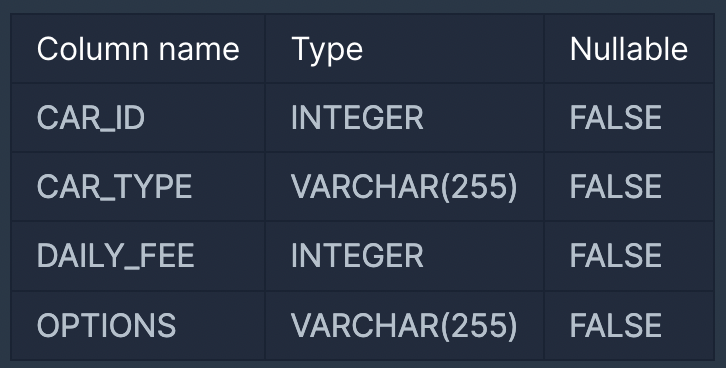 → 자동차 종류로 그룹화 → COUNT(*) 를 사용하여 그룹별 개수 출력