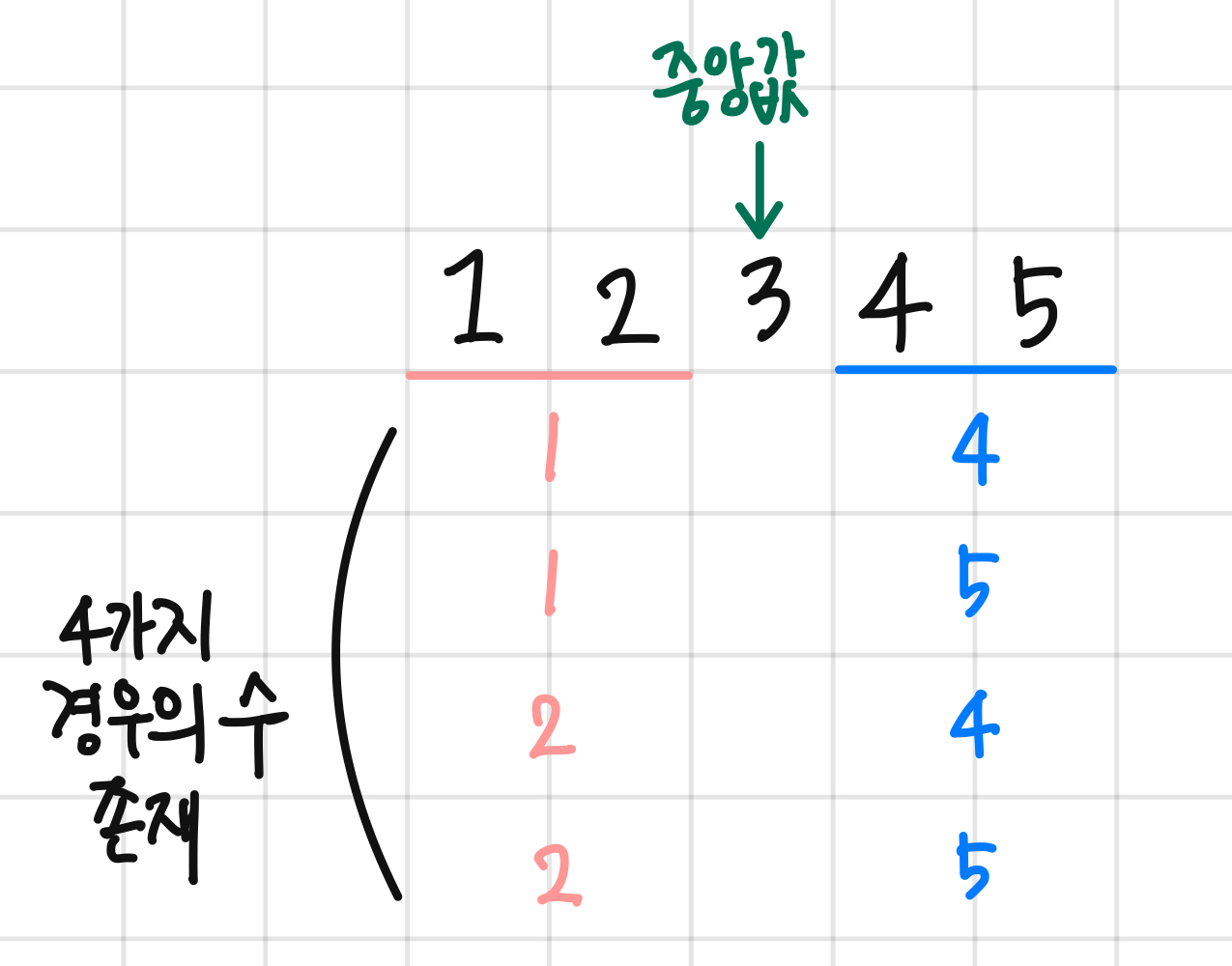 //중앙값 인덱스 찾기 - 이분탐색