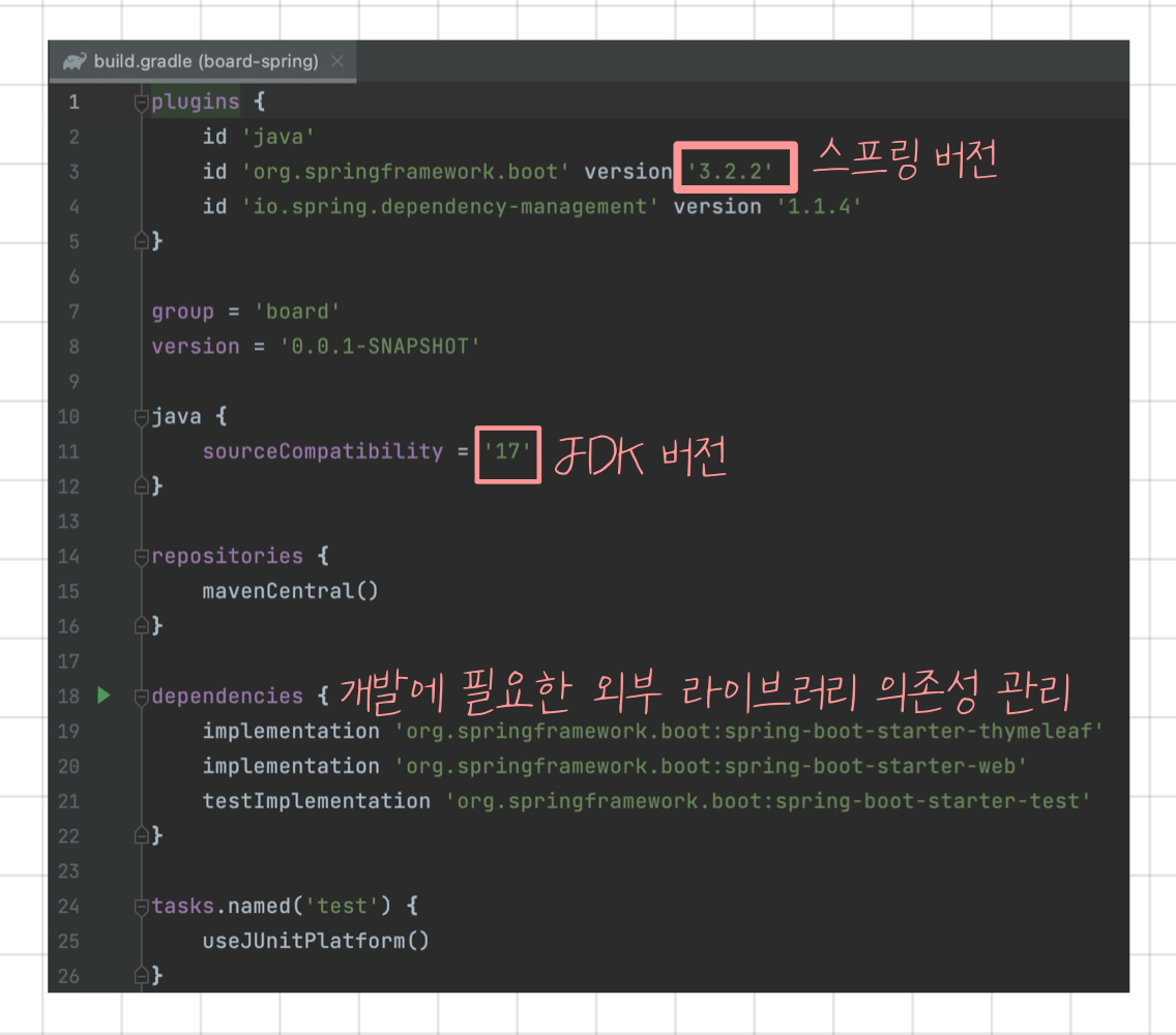 - build.gradle : Gradle 기반의 빌드 스크립트