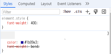 위의 이미지처럼 기본적으로 element.style이 적용되어 있는 것이 확인되었다.