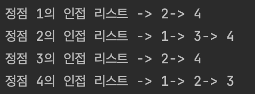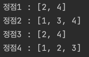 System.out.println("정점"+i+" : "+graph.get(i).toString());