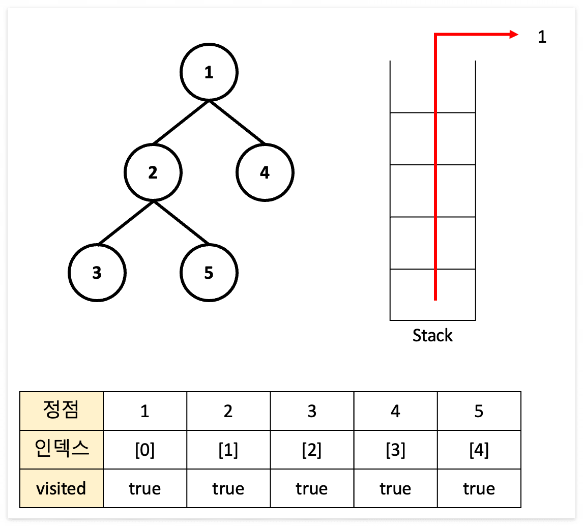 스택이 공백이 될 때까지 빨간 상자 부분을 반복한다.