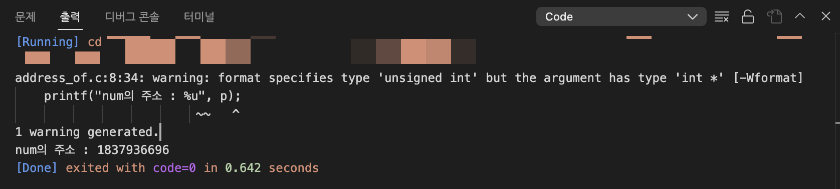 printf("num의 주소 : %u", &num);