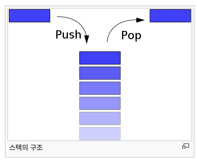 데이터를 임시 저장할 때 사용하는 자료구조로 후입선출(Last-In First-Out) 방식