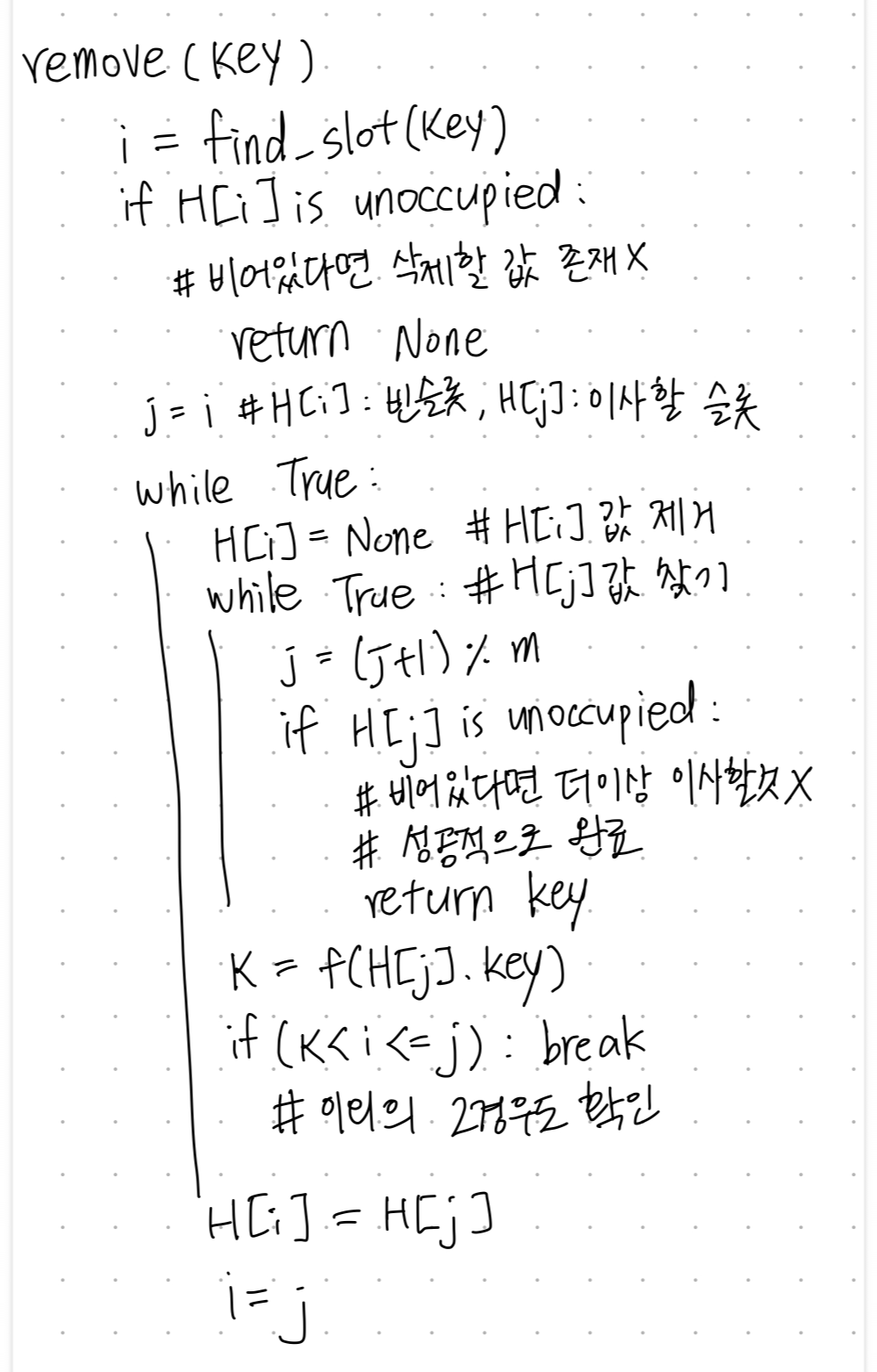 - quadratic probing : 제곱근만큼 증가하면 빈칸 탐색