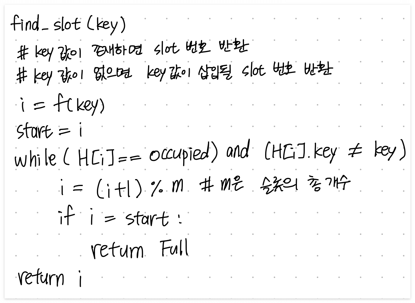 find_slot(key) : key에 맞는 slot 번호 반환하는 함수