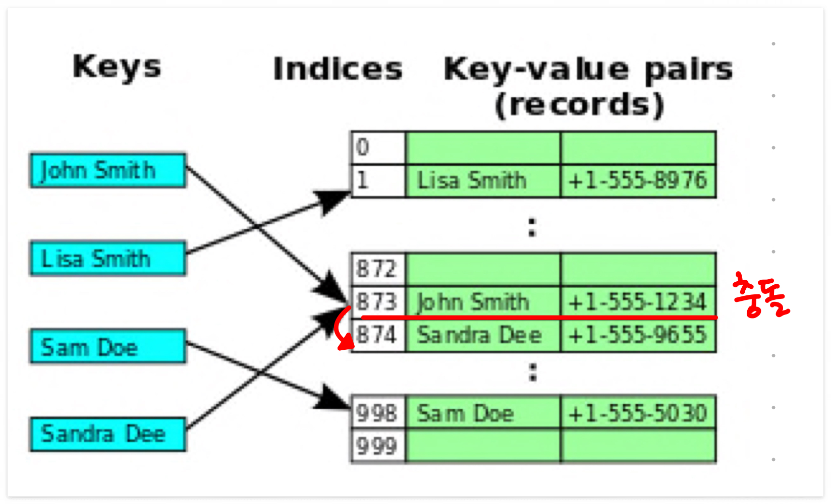- collision resolution method : 충돌시 어떻게 대처하는지
