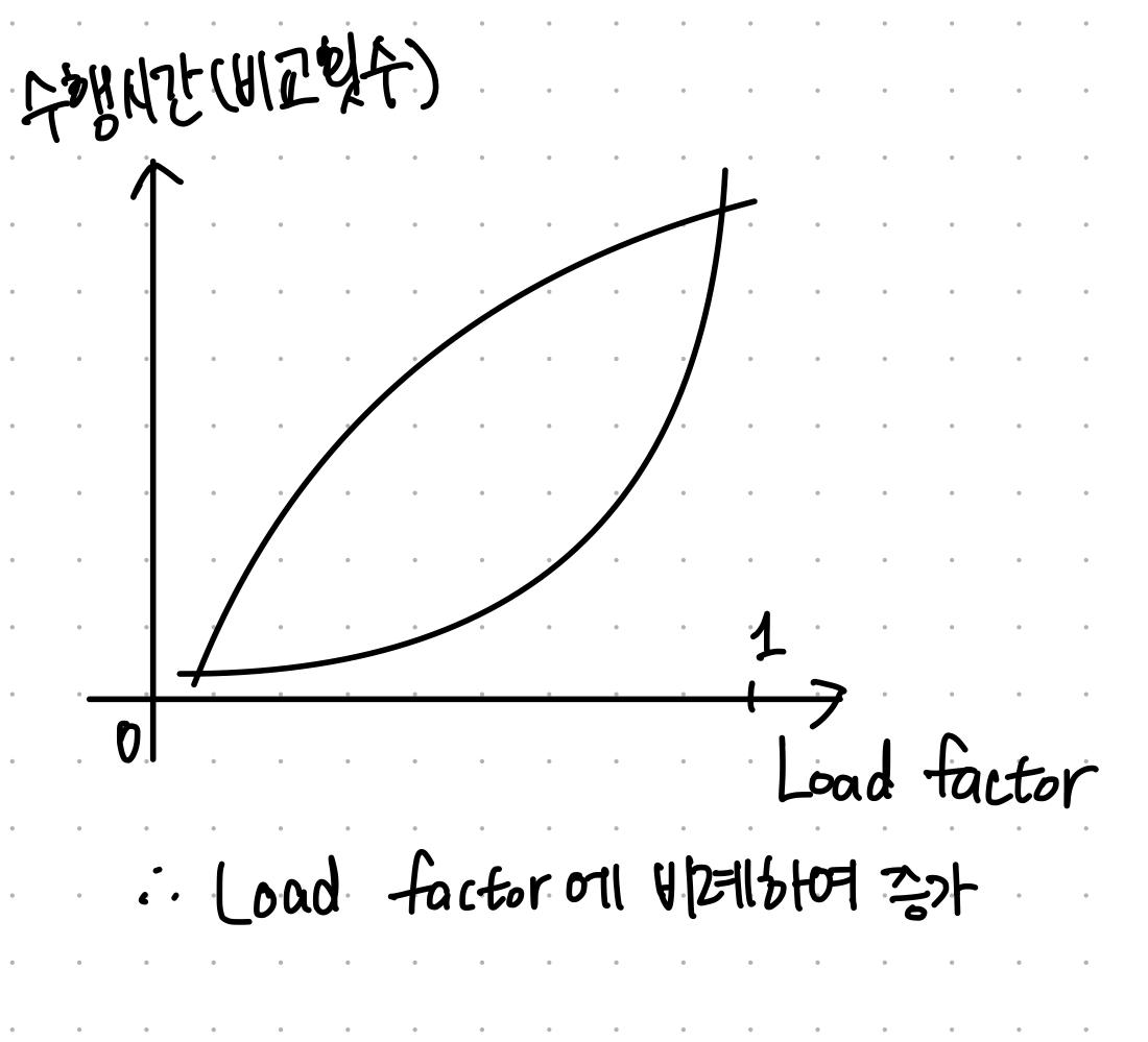 - 0에 가까울수록 해시테이블이 많이 비어있다.