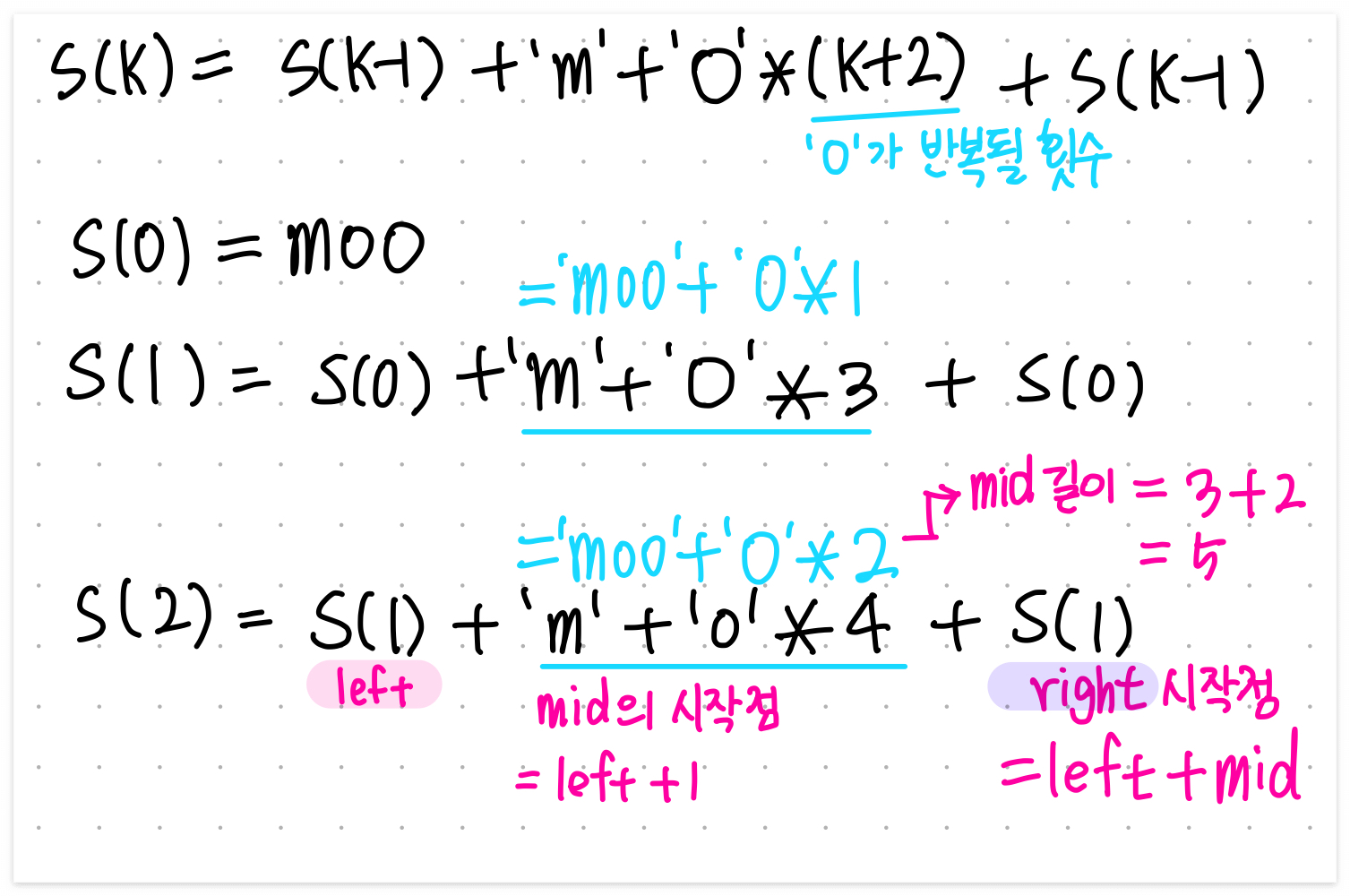 # mid의 길이는 추가된 o의 개수 n과 moo의 길이 3을 더한 값이다.