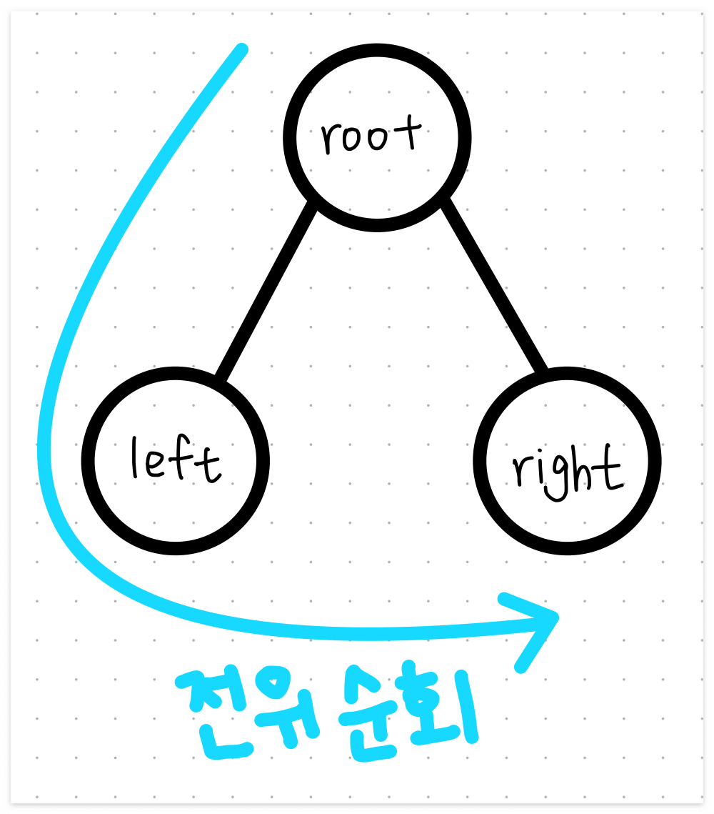 현재 노드를 방문하는 것, 왼쪽 자식 노드를 순회하는 것, 오른쪽 자식 노드를 순회하는 것 = 3가지 주요 단계