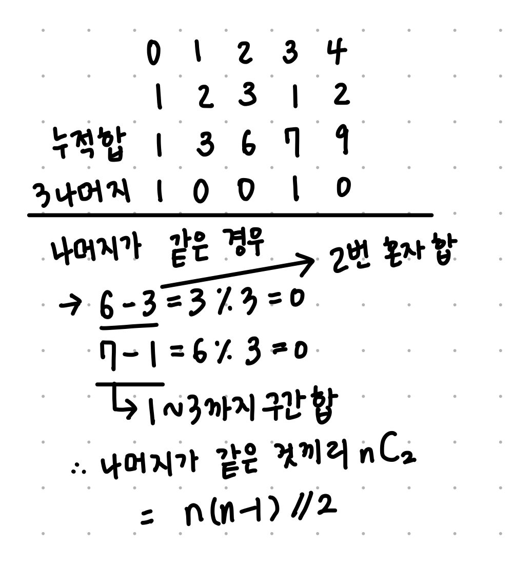 # 각 누적합을 M으로 나눈 각 나머지의 개수를 저장할 배열