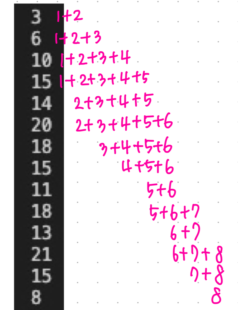 < 참고 공식 > https://velog.io/@zmdals/연속된-자연수의-합-2-수학적풀이