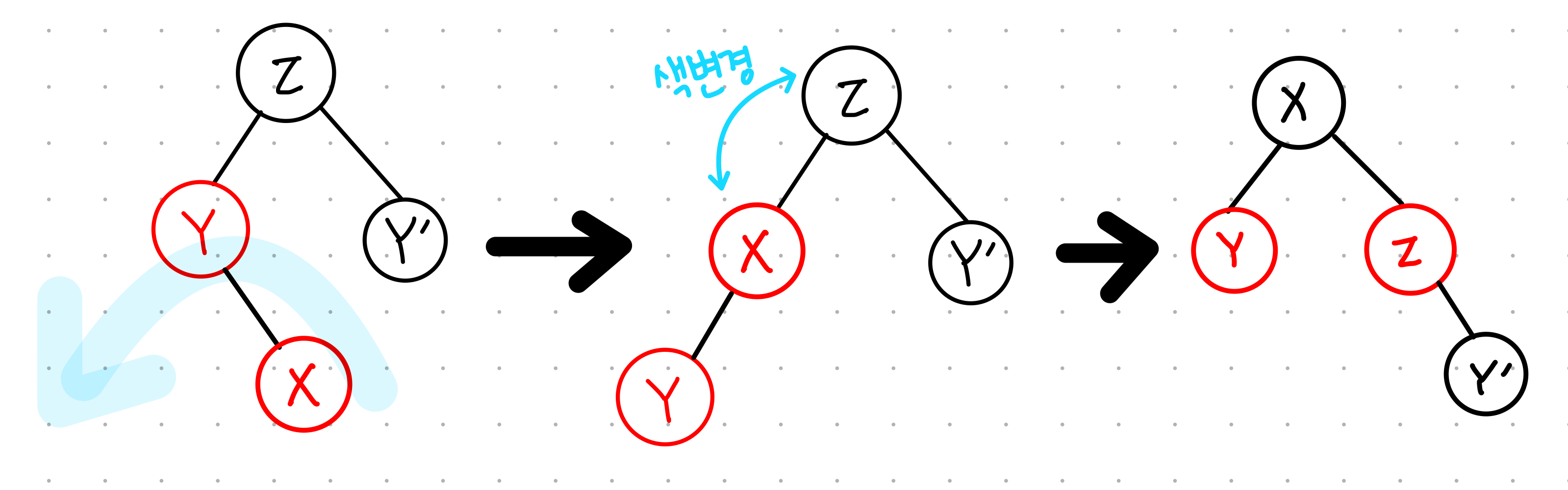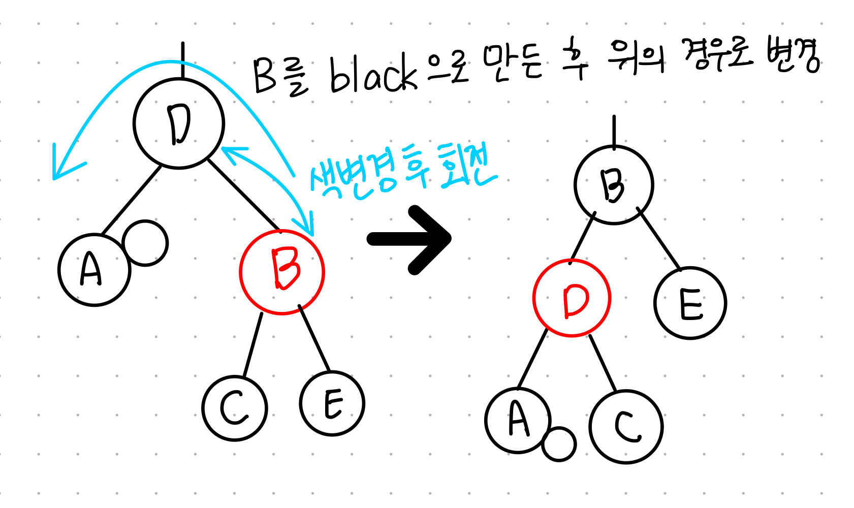 - b와 d의 색을 서로 변경하고 d를 기준으로 왼쪽 회전