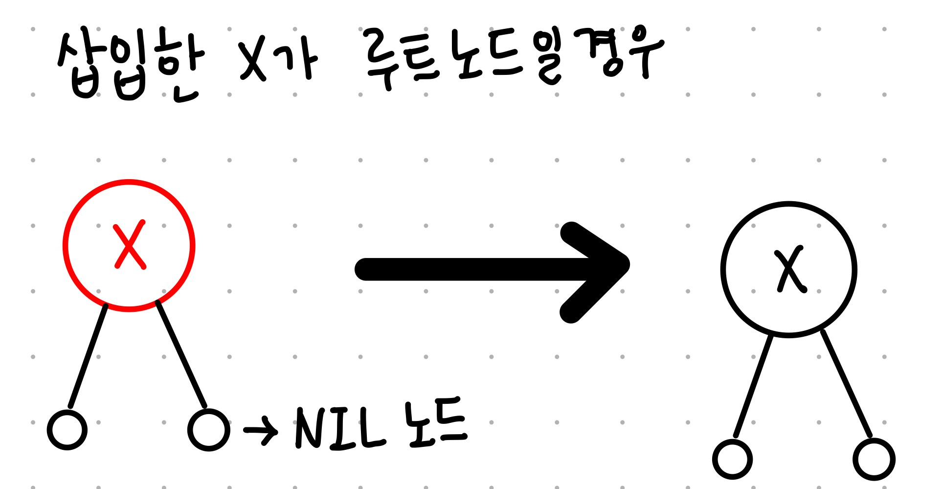 - 모든 nil node = balck = 모든 leaf 노드는 black이다.