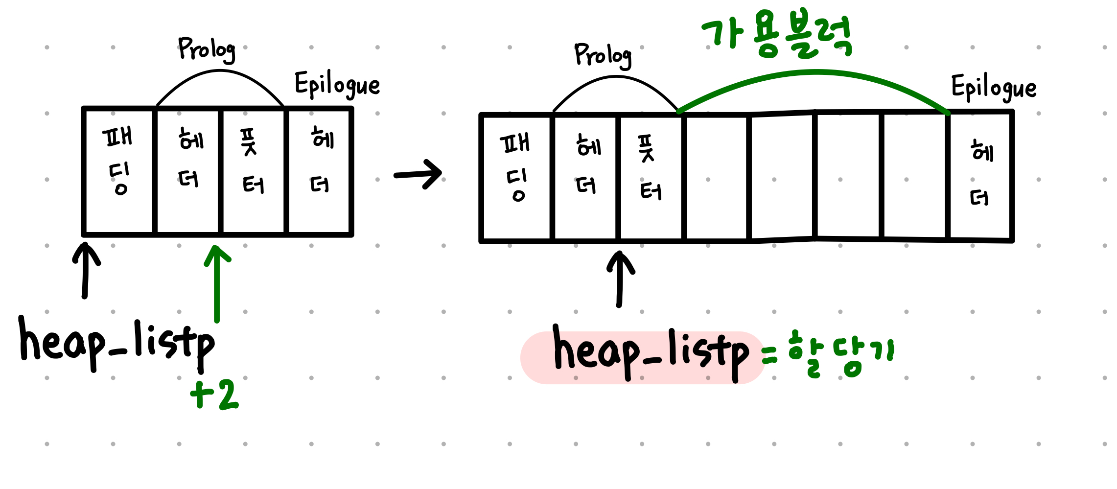 //새로 할당 받은 가용 블록 앞에 또다른 가용 블록이 존재할 수 있다.