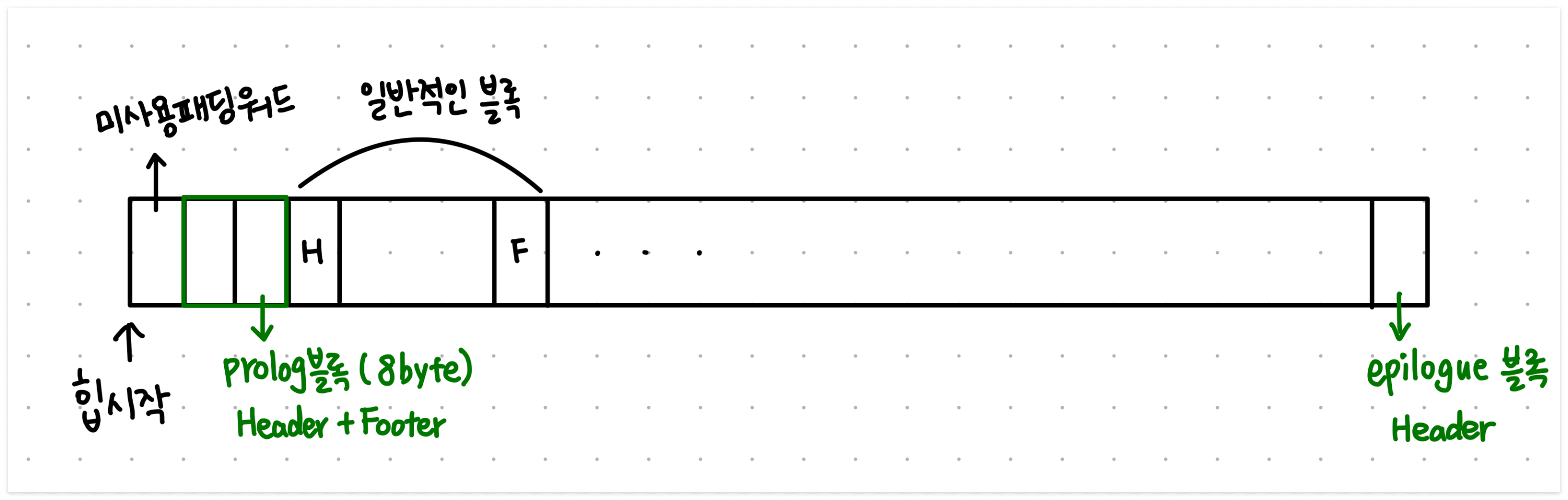 PUT(HDRP(NEXT_BLKP(bp)), PACK(0, 1)); //새로운 Epilogue