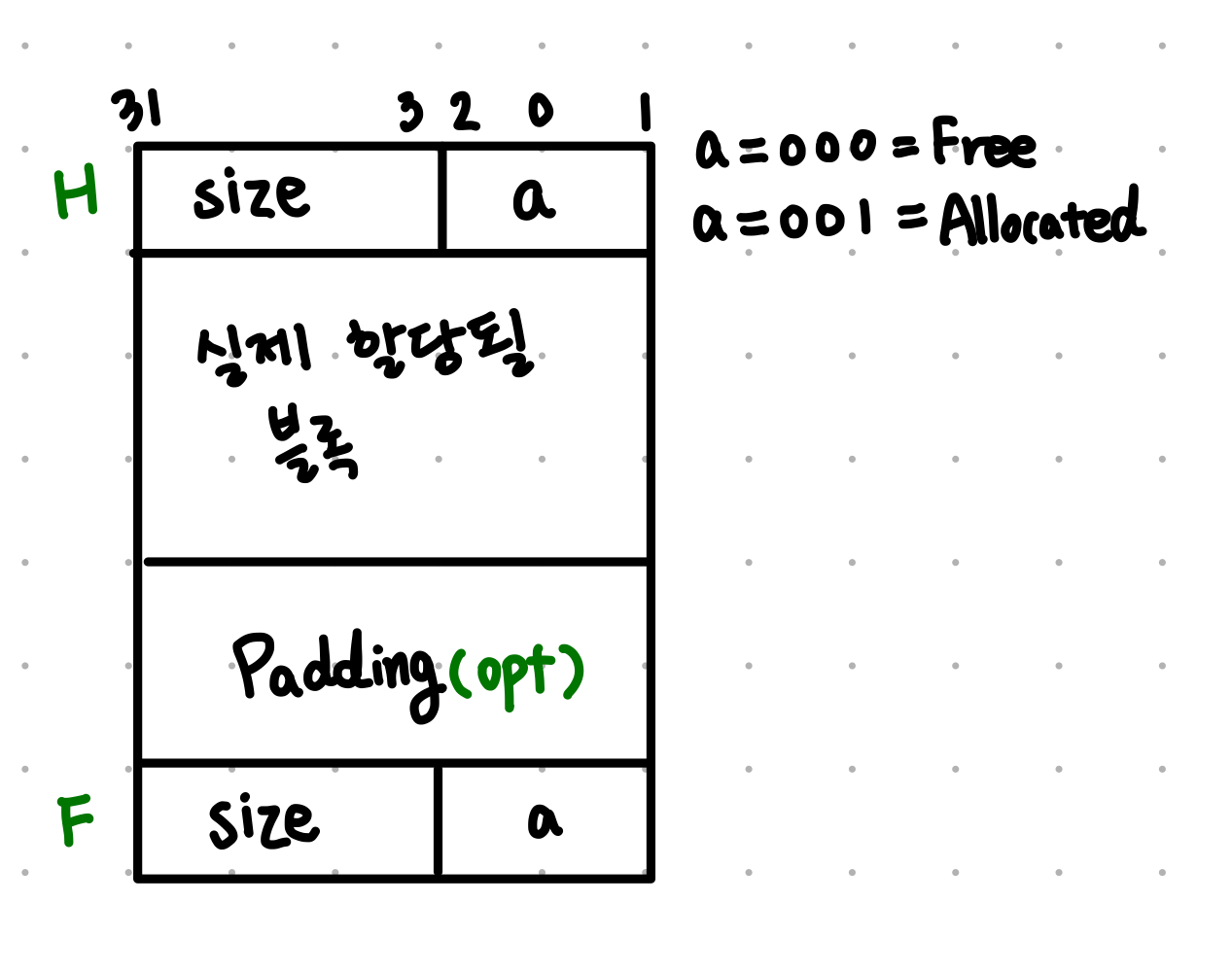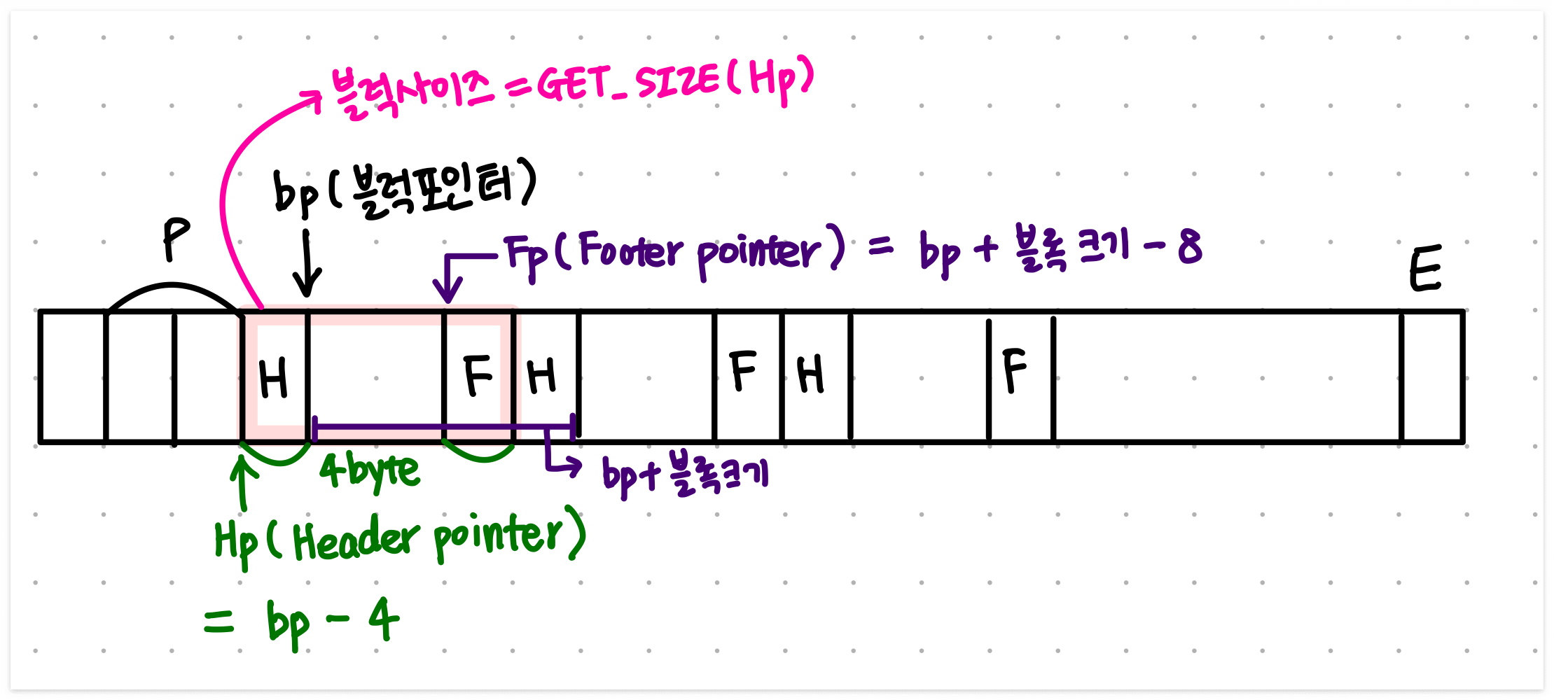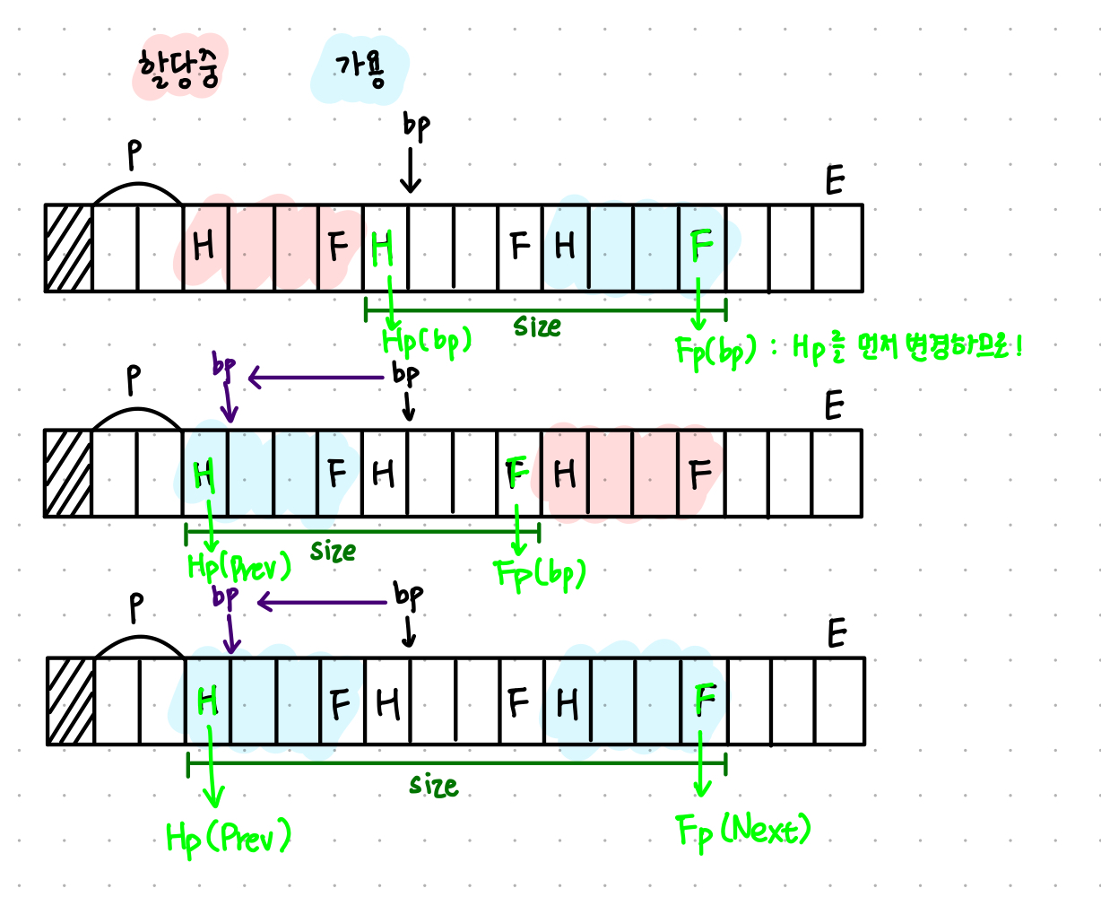 PUT(HDRP(bp), PACK(size, 0)); //가용 블록의 HEADER