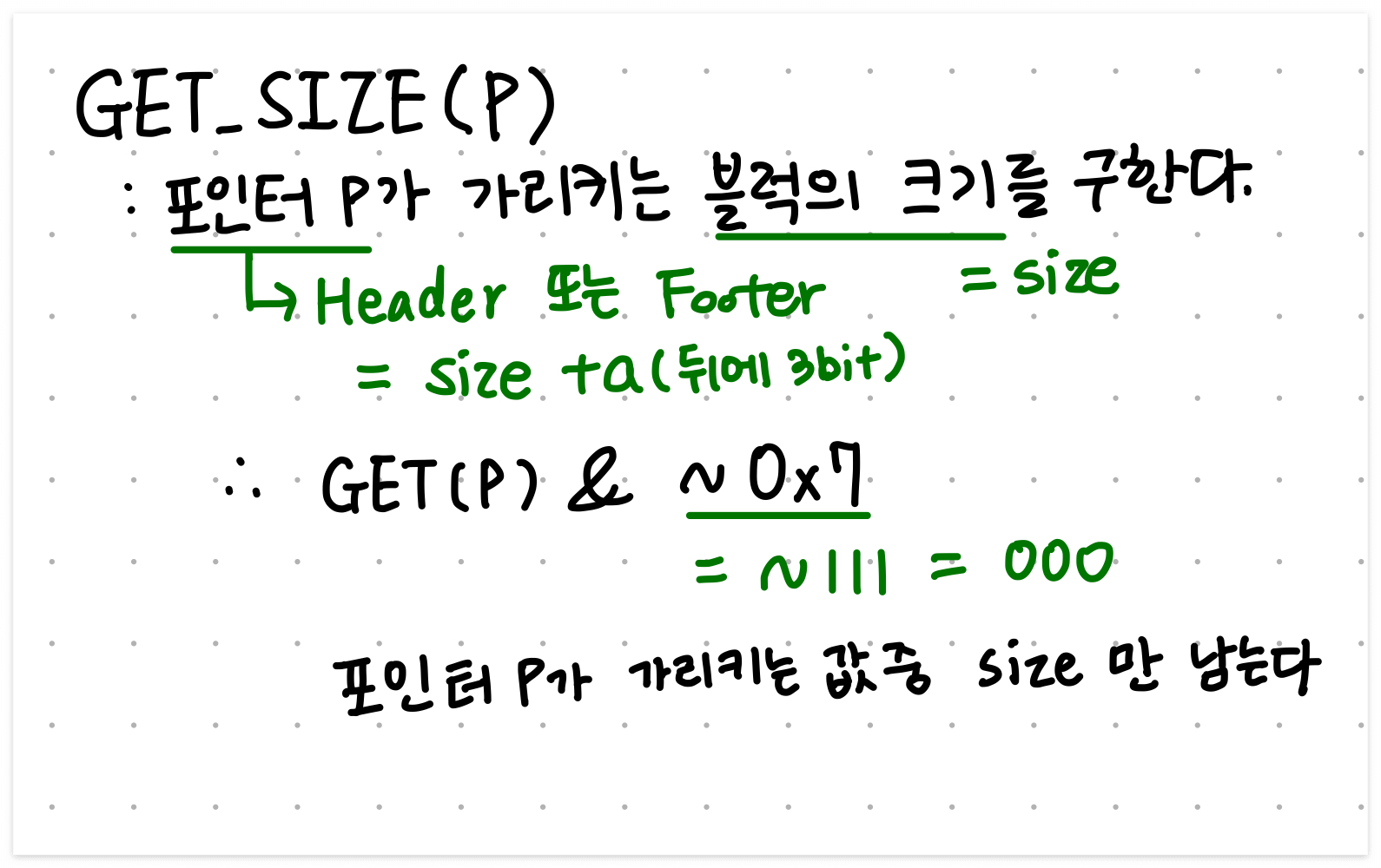PUT(FTRP(bp), PACK(size, 0)); //가용 블록의 FOOTER