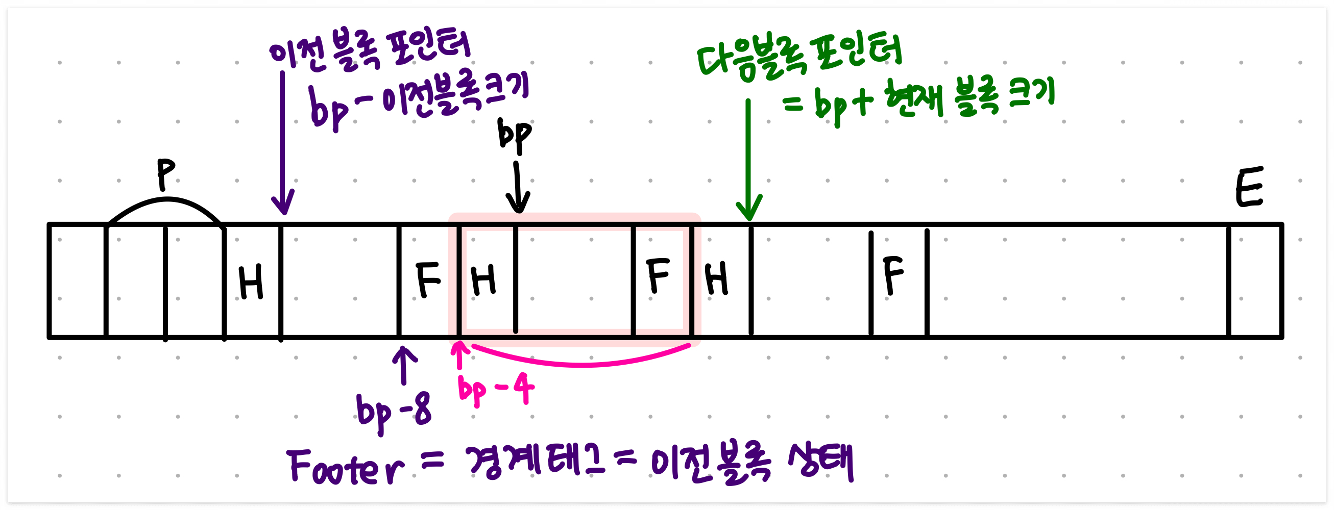 size_t prev_alloc = GET_ALLOC(FTRP(PREV_BLKP(bp))); //이전 블록의 할당 비트