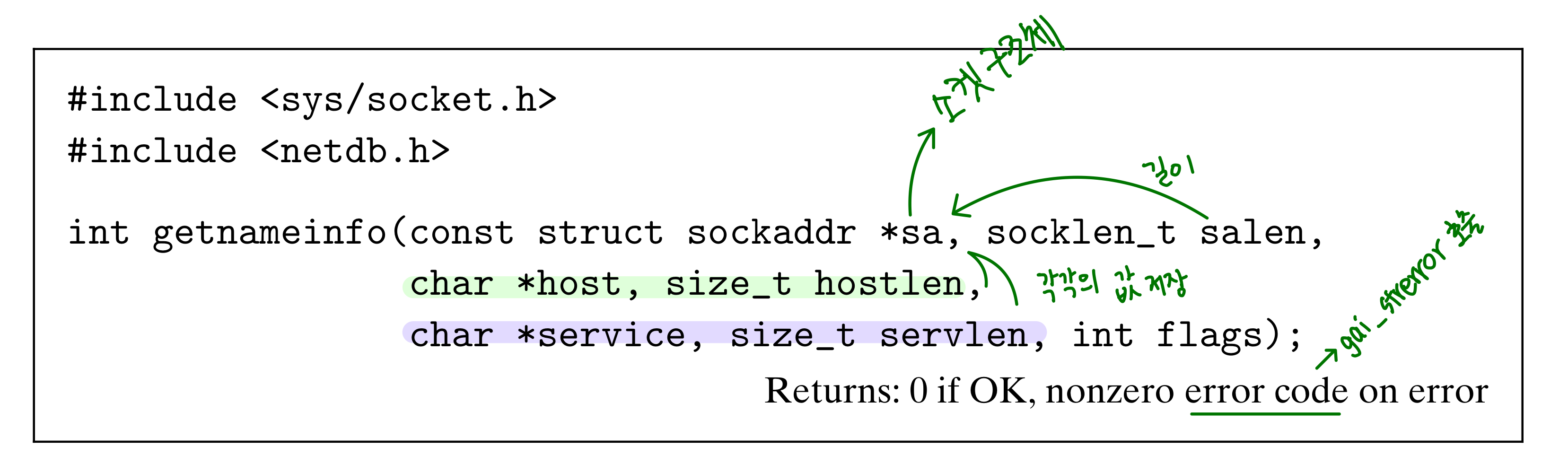 소켓 주소 구조체를 대응되는 호스트와 서비스 이름 스트링으로 변환