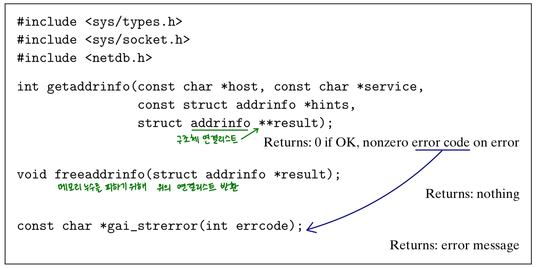 ▶ getaddrinfo(), freeaddrinfo(), gai_strerror() 함수