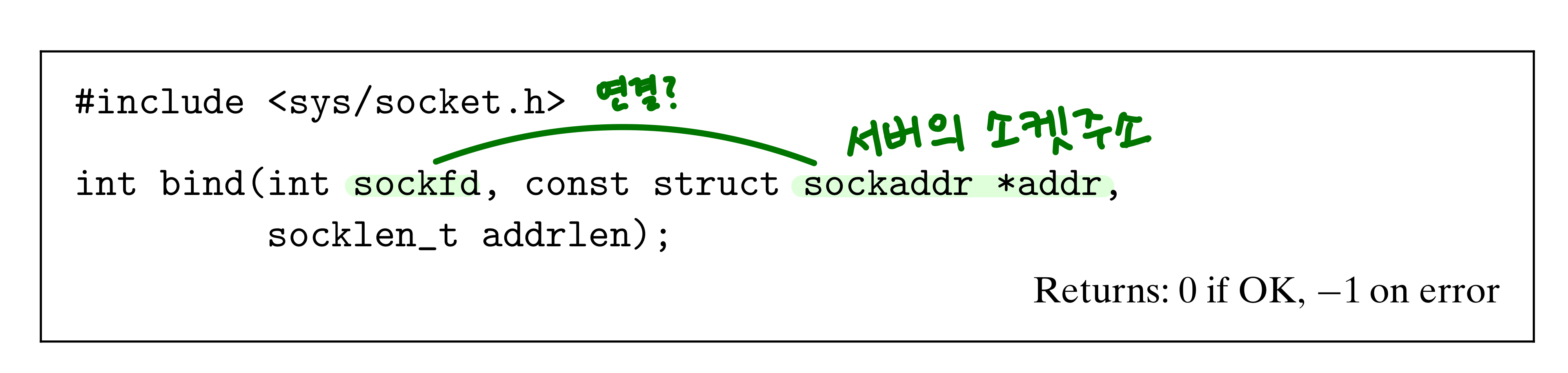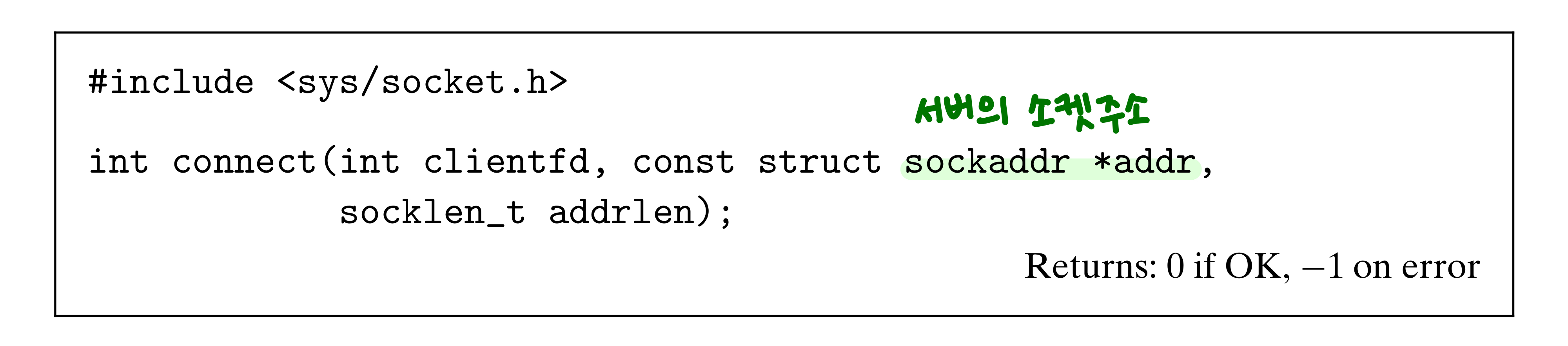 - sockfd : socket() 함수에서 리턴받은 소켓 디스크립터
