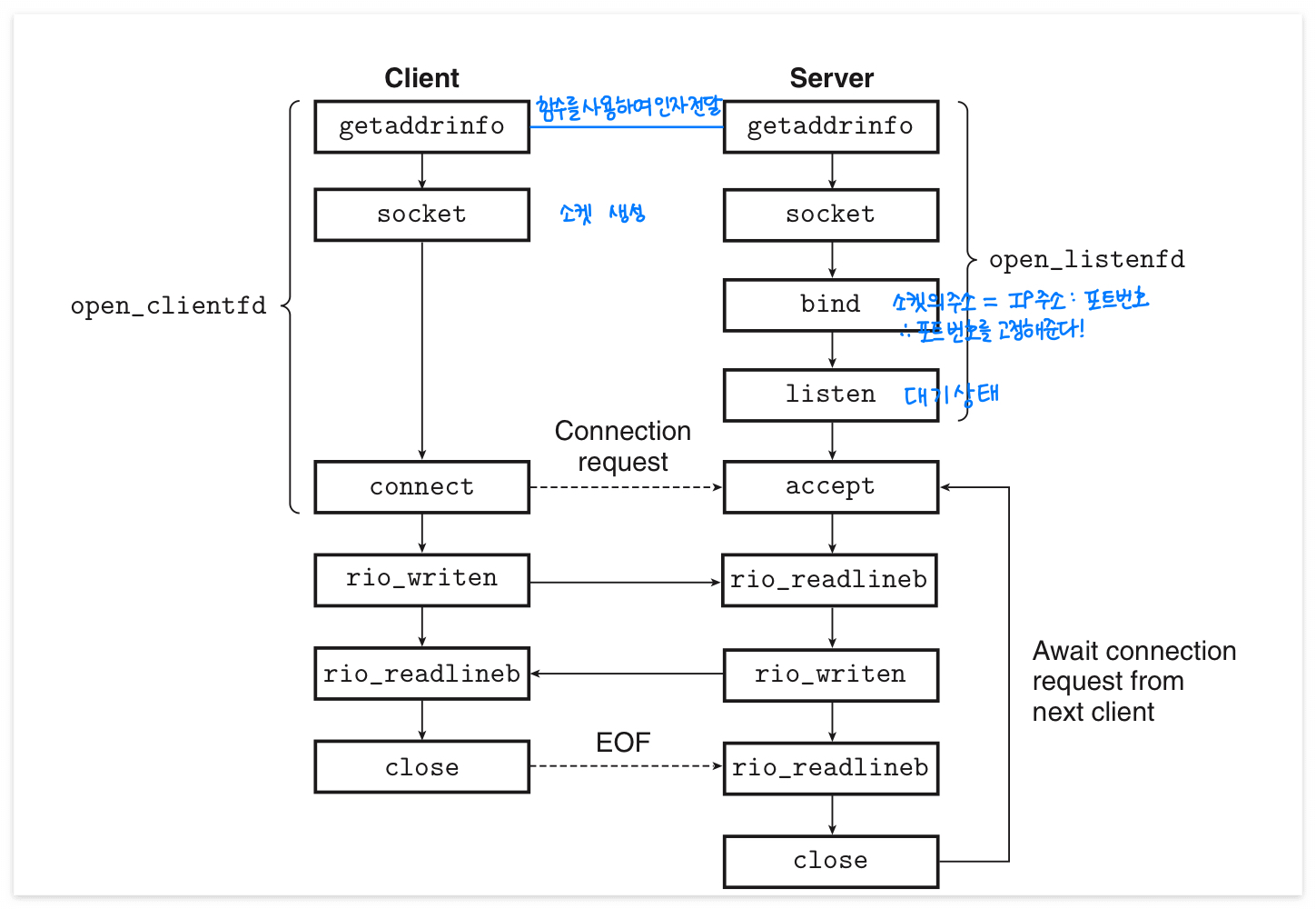 클라이언트가 이 함수를 호출하여 서버와 연결을 만든다.
