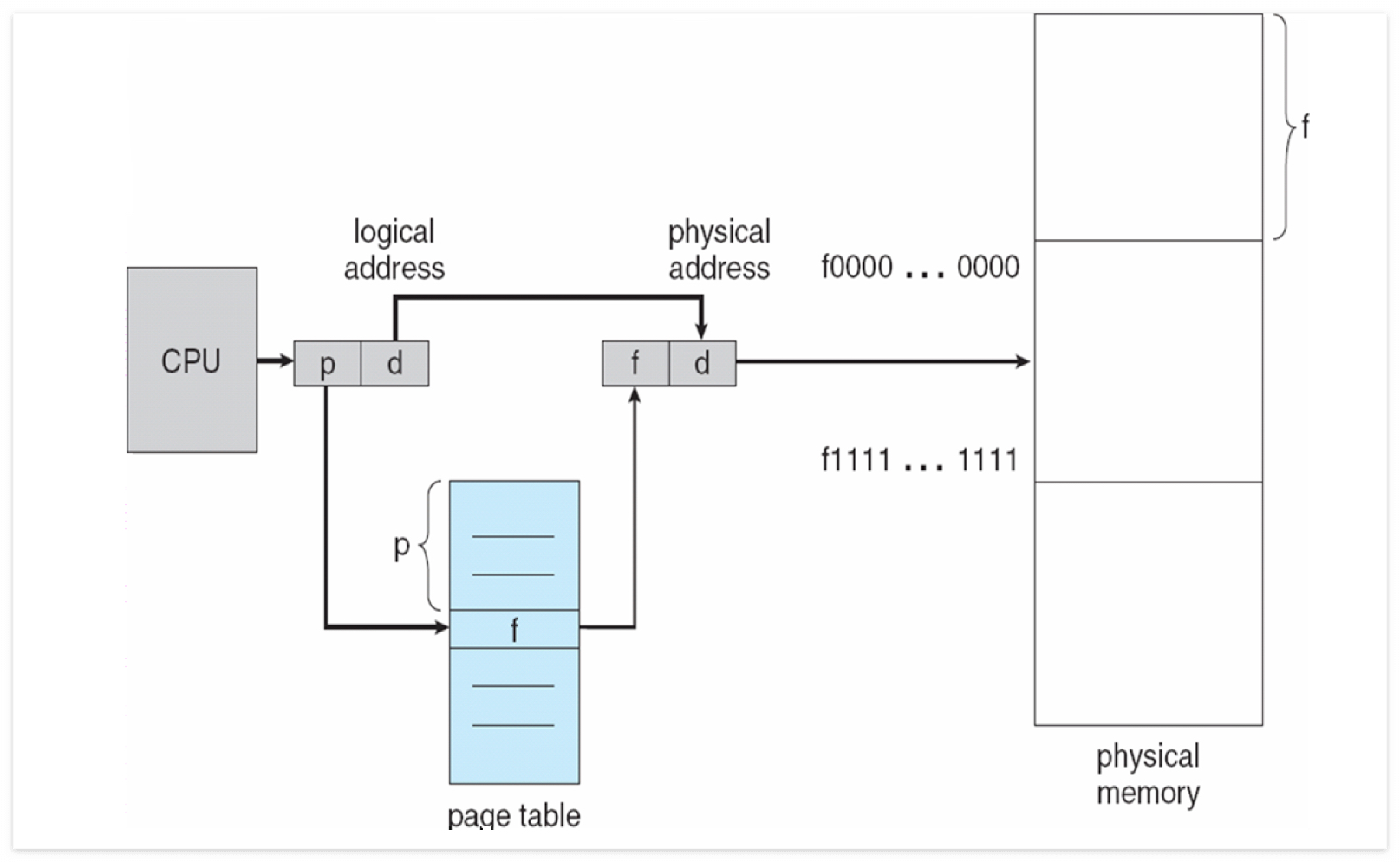- page number는 frame number로 변환되고 offset과 결합