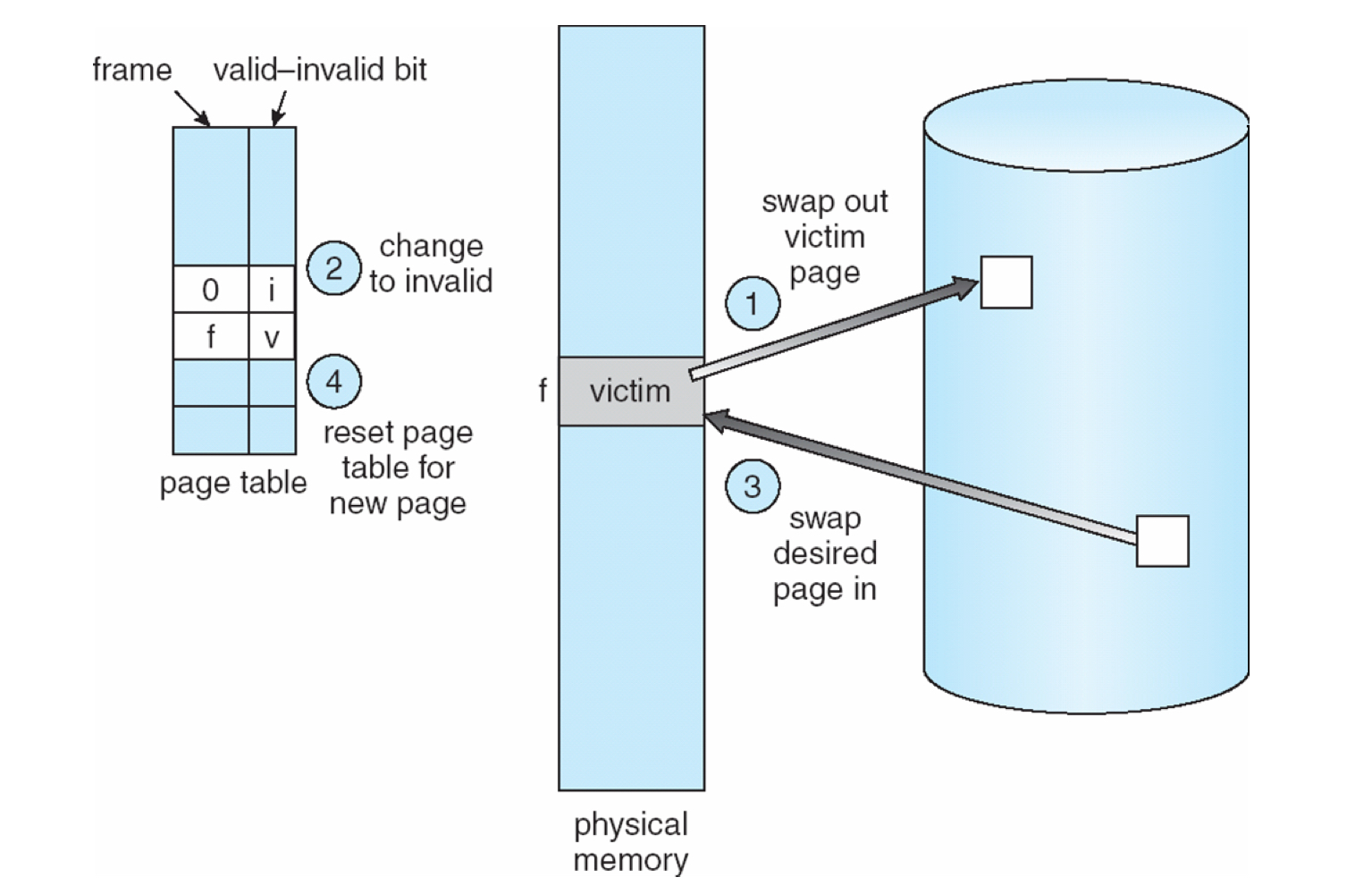 - 프레임에서 swap partition으로 페이지를 제거하기 위해 사용되지 않은 swap slot을 선택