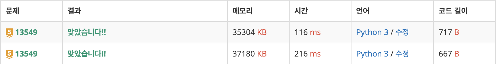 ์์ ํ์ด๊ฐ BFS, ์๋์ ํ์ด๊ฐ ๋ค์ต์คํธ๋ผ๋ฅผ ์ด์ฉํ ๊ฒ์ผ๋ก ๋ค์ต์คํธ๋ผ ๋ณด๋ค BFS ํ์ด์ ์๊ฐ์ด ๋ ๋น ๋ฅธ ๊ฒ์ ๋ณผ ์ ์๋ค.
