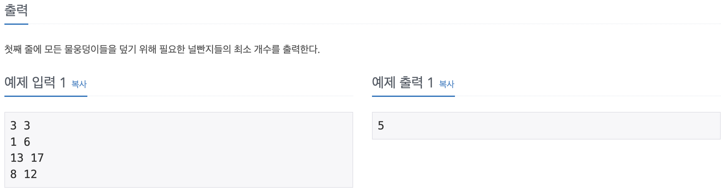 ์ด ๋ฌธ์ ๋ [๋ฌผ์ ๋ฉ์ด๋ค์ ๋ชจ๋ ๋ฎ์ผ๋ ค๊ณ ํ๋ค.] ๋ผ๋ ์กฐ๊ฑด์ด ์์ผ๋ฏ๋ก ๋ฌผ์ ๋ฉ์ด๊ฐ ๋ณด์ด๋ฉด ์ผ๋จ ๋ฎ์ผ๋ฉด ๋๋ค.