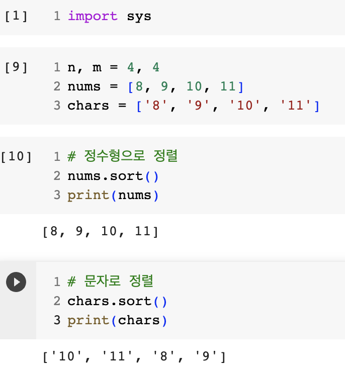 ๋จ ํ๋ ๋ค๋ฅธ ์ ์ด ์ ๋ ฅ๋ฐ์ ๋ฐ์ดํฐ ํ์ ์ด์๋๋ฐ ์๊ฐํด๋ณด๋ [์ ๋ ฅ์ผ๋ก ์ฃผ์ด์ง๋ ์๋ 10,000๋ณด๋ค ์๊ฑฐ๋ ๊ฐ์ ์์ฐ์]์ด๋ฏ๋ก ์ด๋ ์ ์๋ก ์ ๋ ฌํด์ผ ์ฌ๋ฐ๋ฅด๊ฒ ์ ๋ ฌ๋๋ค๋ ๊ฒ์ ๊นจ๋ฌ์๋ค.